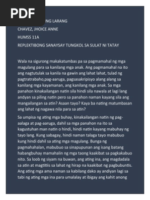 Replektibo Tungkol Sa Sulat Ni Tatay Pdf