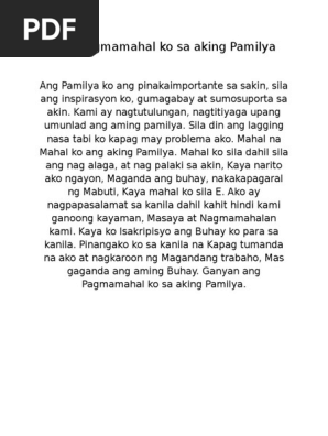 Ang Pagmamahal Ko Sa Aking Pamilya Pdf