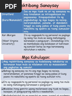 Pagbabahagi ng mga bagay na nasa-isip nararamdaman pananaw at damdamin hinggil sa. Isulat ito gamit ang unang panauhan ng. Ang Replektibong sanaysay ayon kay Michael Stratford isang guro at manunulat ay isa sa mga tiyak na uri ng sanaysay na may kinalaman sa introspeksiyon na pagsasanay.