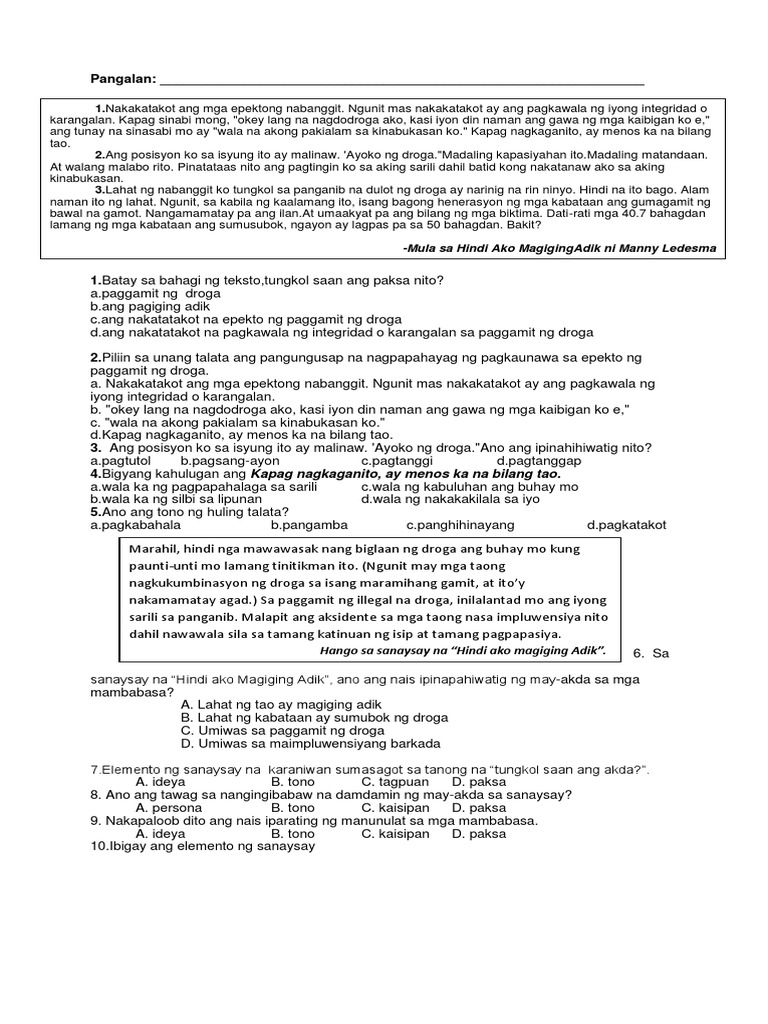 Sanaysay tungkol sa hindi ako magiging adik. Mga Sanaysay Tungkol sa Kaibigan 8 Sanaysay Save. Ang tekstong Argumentatibo ay uri ng teksto na obhebtibong nangungumbinsi sapagkat ito ay nakabatay sa mga datos at impormasyon na higit na nagpapatibay sa argumentong nais patunayan. Umiwas sa maimpluwensiyang barkada 19.