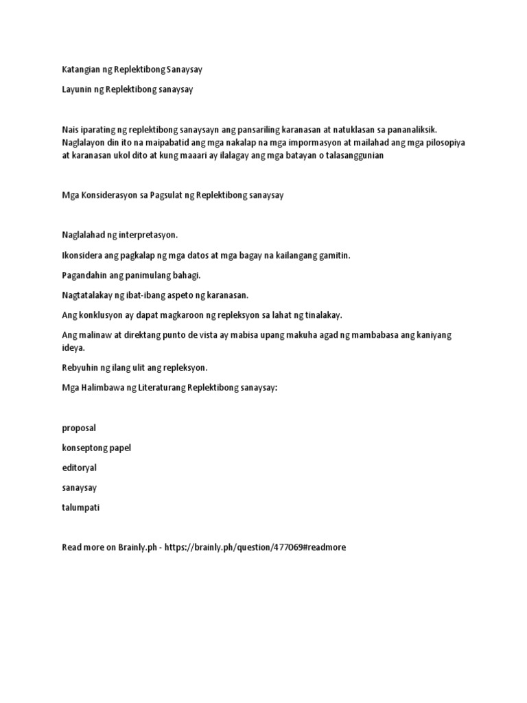 Katangian Ng Replektibong Sanaysay Pdf