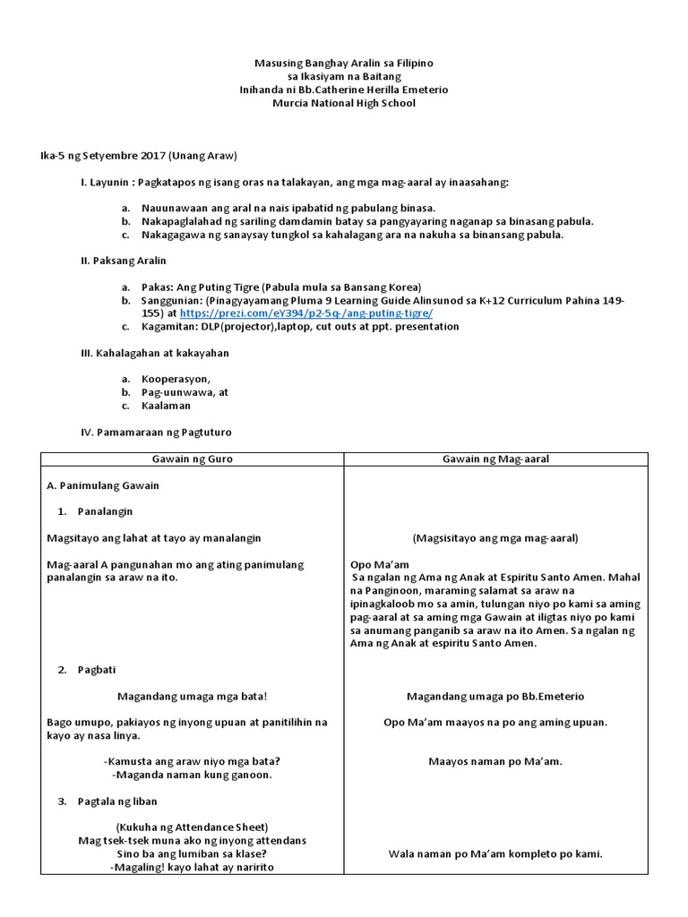 Masusing Banghay Aralin Sa Filipino Pdf