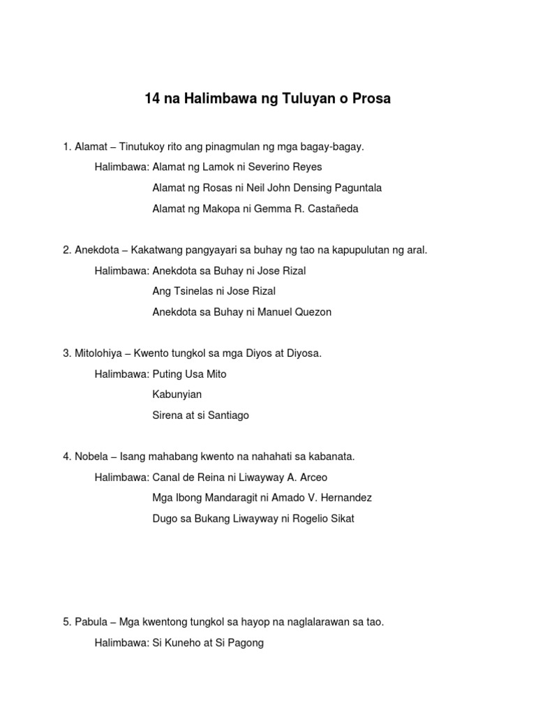 14 Na Halimbawa Ng Tuluyan O Prosa Pdf