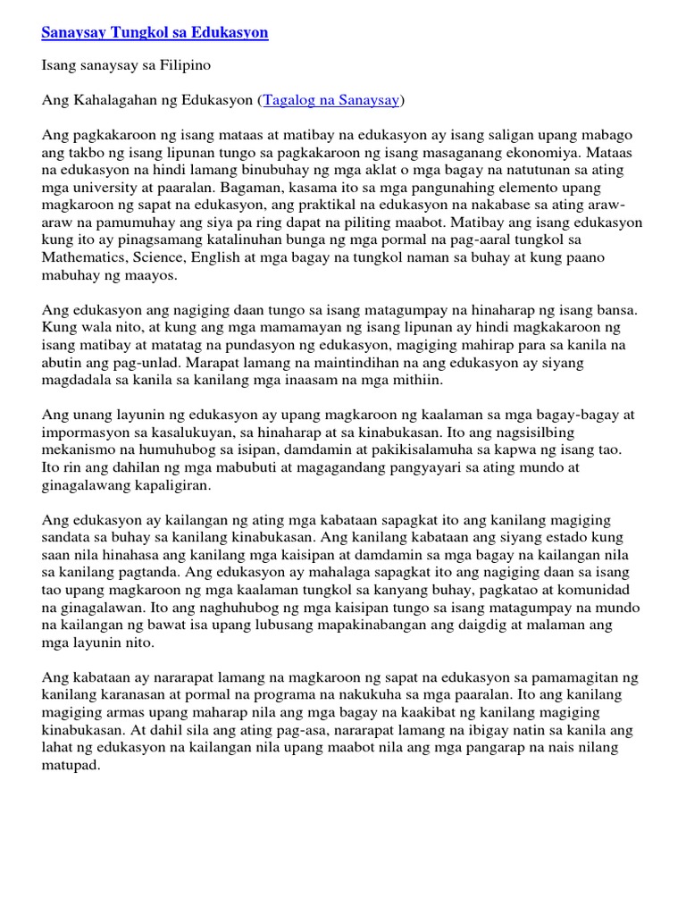 Sanaysay Tungkol Sa Edukasyon Pdf