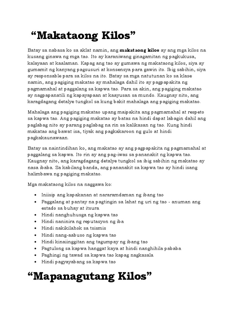 Kilos ng tao acts of man Mga kilos na nagaganap sa tao. Magbahaginan ng isang sitwasyon sa inyong buhay na kung saan nagpapakita ng iyong kilos.